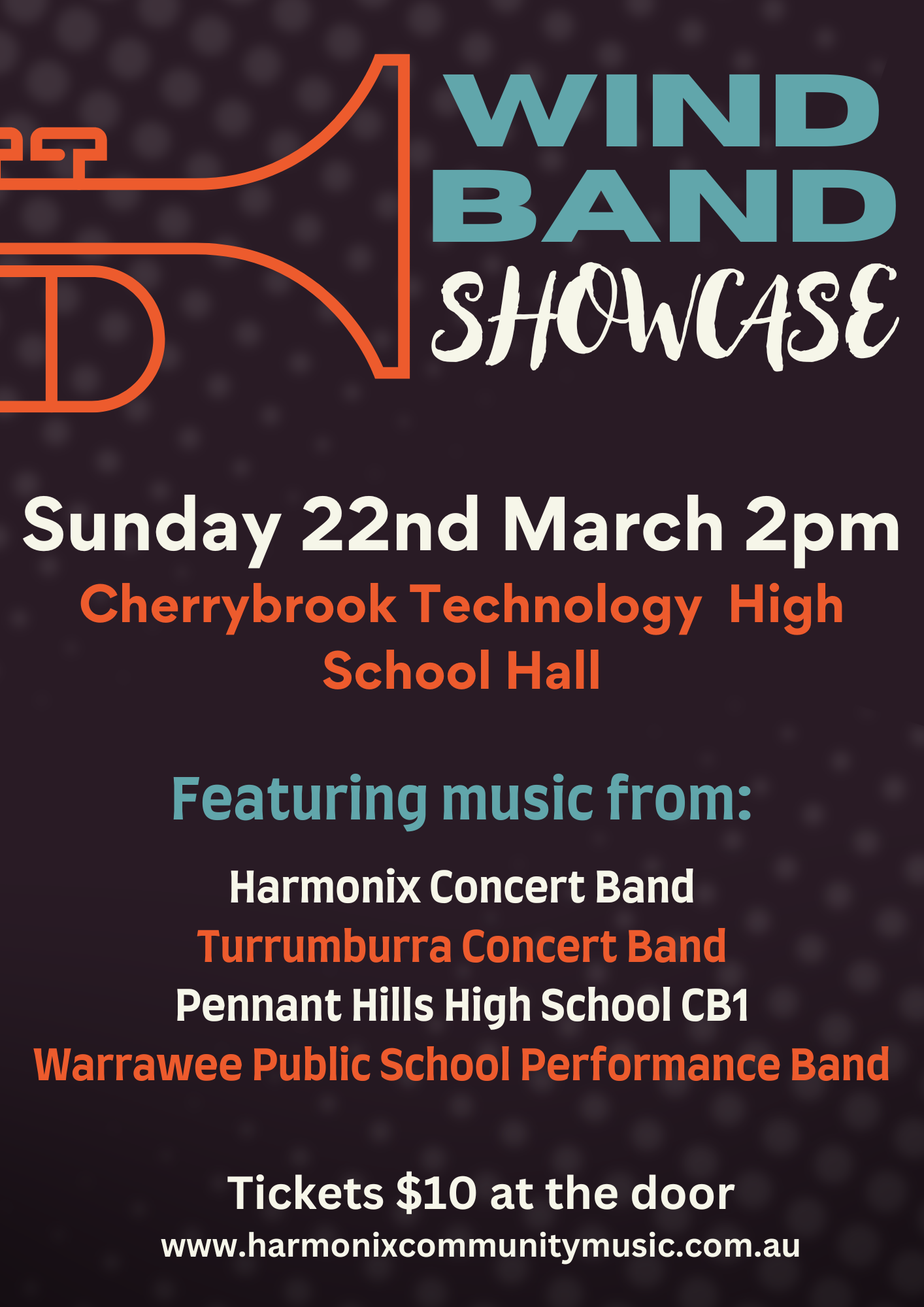 Harmonix Concert Band is proud to host 3 other fine ensembles in an afternoon of community banding. This concert features ensembles at various levels, including primary school, secondary school and adult community ensembles. Each ensemble will present a diverse program, showing off the range of tone colours a wind ensemble can produce.